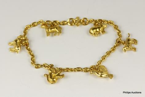 A FINE HIGH 20CT CARAT GOLD CHARM BRACELET 15.2GRAMS
