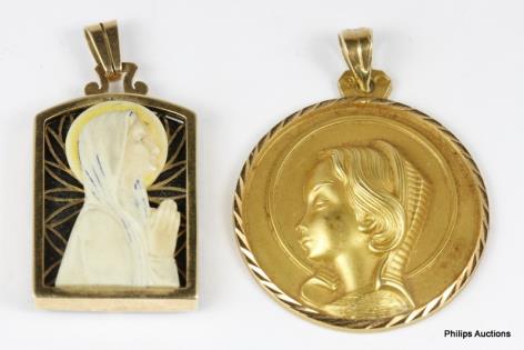A TRI COLOURED 18CT GOLD PANEL PENDANT 6.6GRAMS
