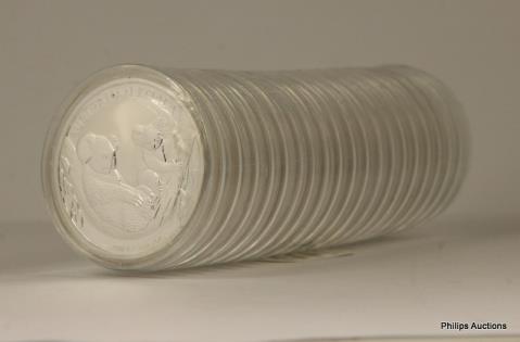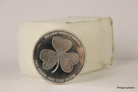 AN UNCIRCULATED TUBE OF TWENTY IRISH SHAMROCK 1OZ 9999 COINS.