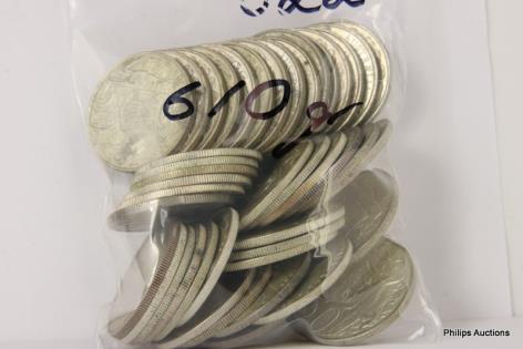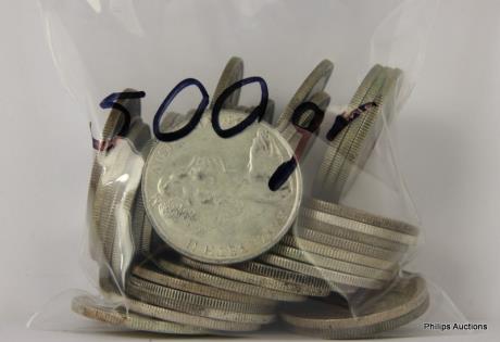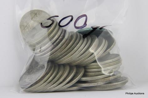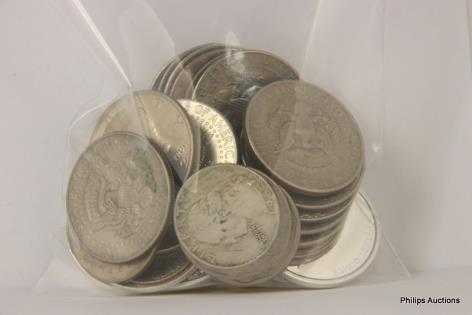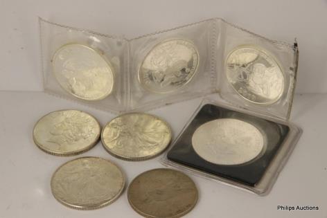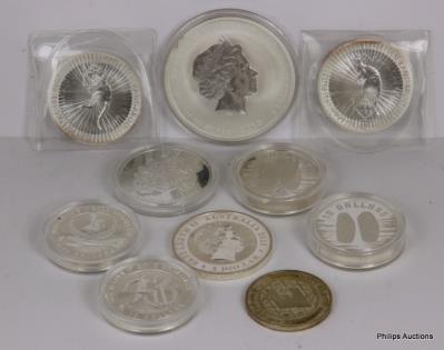 A MIXED OFFERING OF 21 AMERICAN COINS & TEN 1/2 OZ 999 TOKENS.