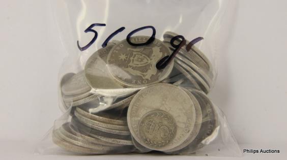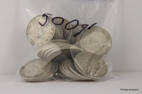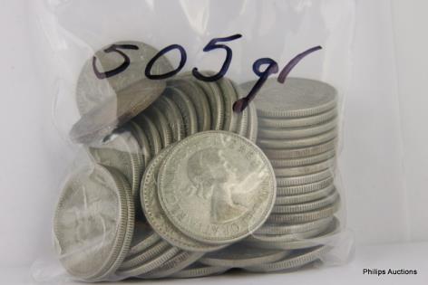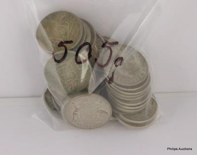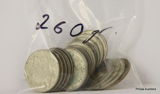 AN OFFERING OF AUSTRALIAN SILVER FLORINS 1944 & EARLIER, 925 SILVER, 235 GRAMS.