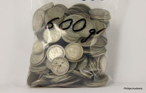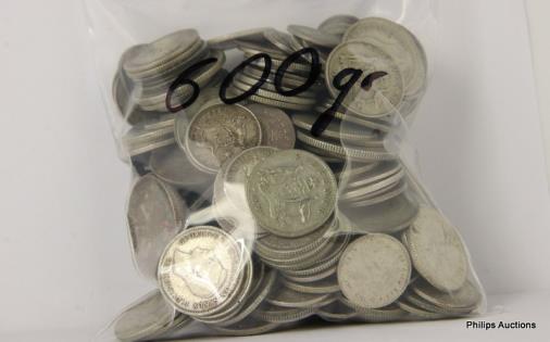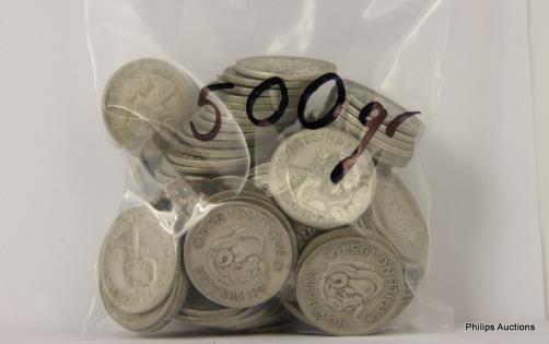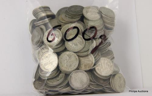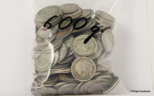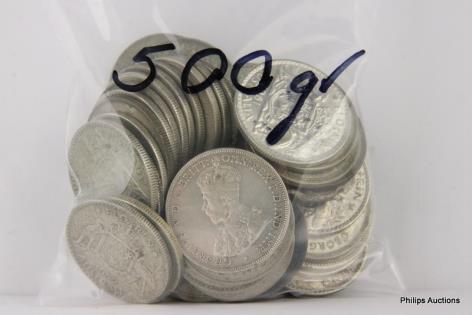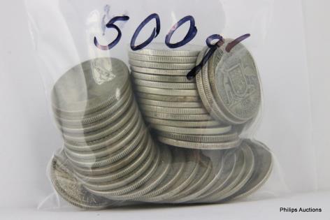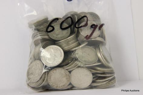 AN OFFERING OF AUSTRALIAN SILVER 500 THREE PENCE, 600 GRAMS.