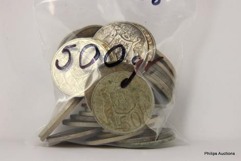 A MIXED OFFERING OF AUSTRALIAN 500 SILVER COINS, 700 GRAMS.