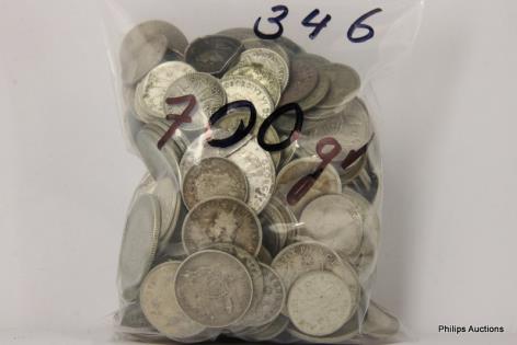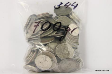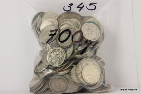 A MIXED OFFERING OF MOSTLY AUSTRALIAN 500 SILVER COINS & OTHER, 700 GRAMS.