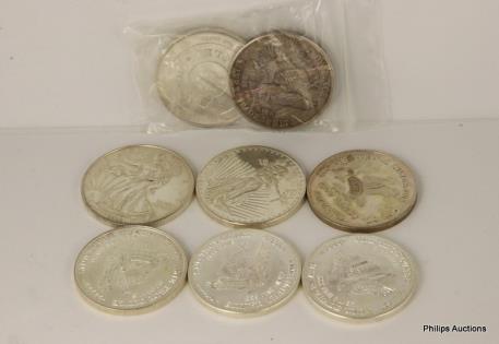 A MIXED OFFERING OF EIGHT FINE 999 SILVER AMERICAN COINS.
