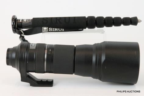 A TAMRON ULTRA-TELEPHOTO ZOOM WITH CASE AND MONOPOD