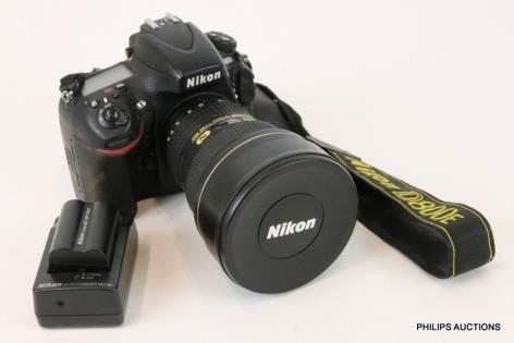 A NIKON D800E DSLR CAMERA AND NIKON F/2.8 LENS