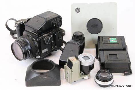 A ZENZA BRONICA ETR SERIES MEDIUM FORMAT CAMERA WITH ACCESSORIES