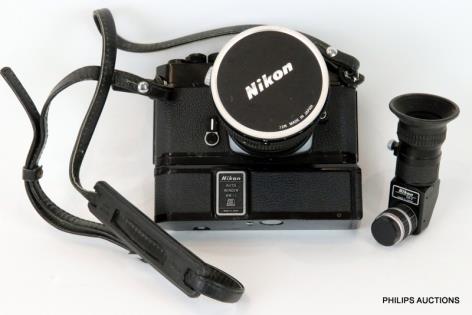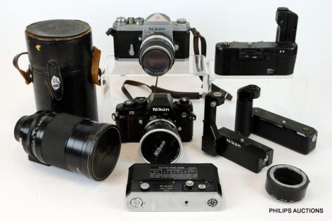 TWO NIKON F AND F3 CAMERAS WITH LENSES AND FOUR DRIVES