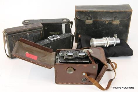 A ROLLEIFLEX 620 AND THREE FOLDING CAMERAS