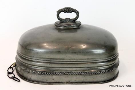 A LARGE VICTORIAN PEWTER MEAT CLOCHE