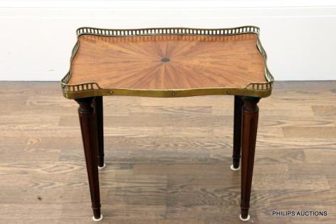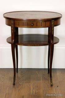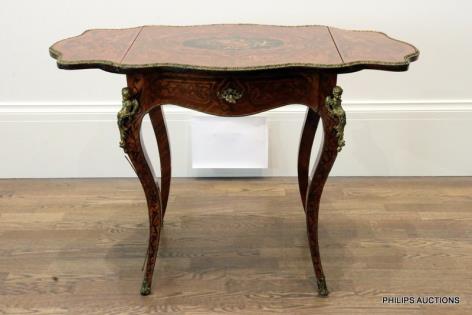 A LOUIS XV STYLE TULIPWOOD MARQUETRY DROPSIDE OCCASIONAL TABLE