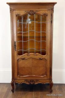 A LOUIS XV STYLE OAK DISPLAY CABINET