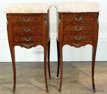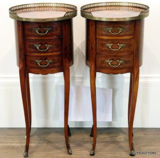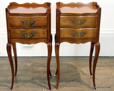 A PAIR OF LOUIS XV STYLE CHERRYWOOD BEDSIDE TABLES