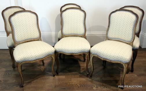 A SET OF SIX LOUIS XV-STYLE DINING CHAIRS