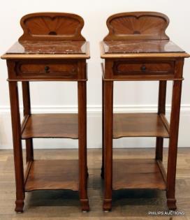 A PAIR OF ART NOUVEAU WALNUT BEDSIDE TABLES