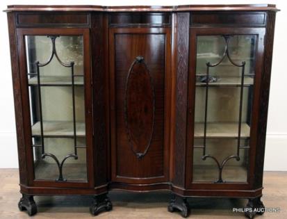 A LATE VICTORIAN MAHOGANY VENEER DISPLAY CABINET