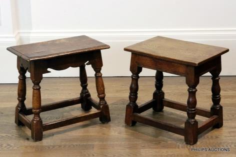 TWO OAK JOINT STOOLS