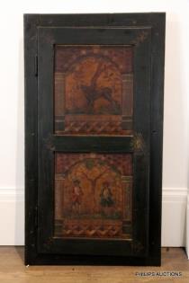 AN ANTIQUE AUSTRIAN PAINTED WALL CABINET DOOR