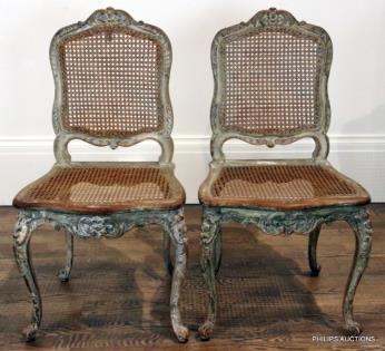 A PAIR OF LOUIS XV-STYLE PAINTED ELM AND CANE CHAIRS
