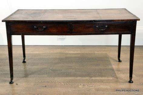 A MAHOGANY LEATHER TOPPED WRITING DESK