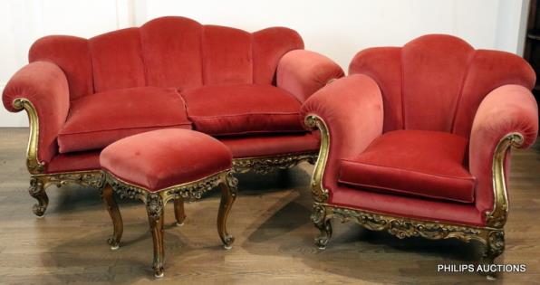 AN ITALIAN ROCOCO STYLE CARVED GILTWOOD FIVE-PIECE SUITE