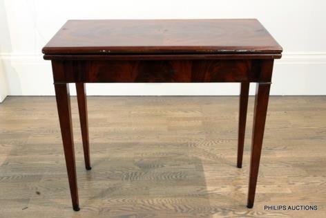 AN EDWARDIAN FLAME MAHOGANY CARD TABLE
