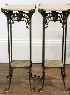 A PAIR OF BRONZE AND ONYX PEDESTAL STANDS