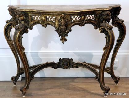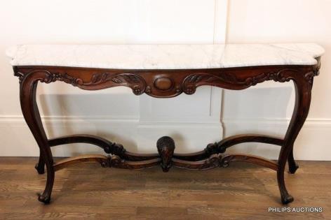 A LOUIS XV STYLE MARBLE TOP HALL TABLE