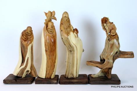 A SET OF FOUR ANGLO-INDIAN PADOUK CARVERS