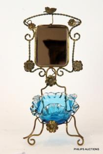 A FRENCH GLASS AND METAL JEWELLERY STAND