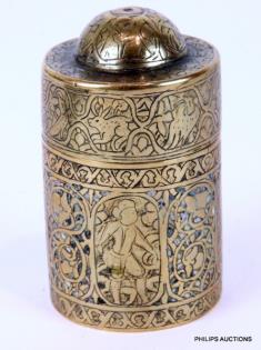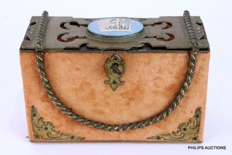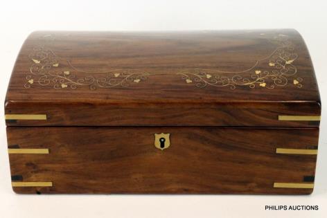 A BRASS INLAID JEWELLERY BOX