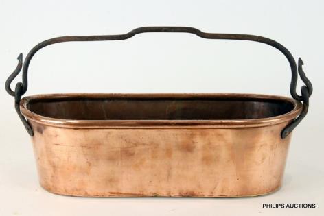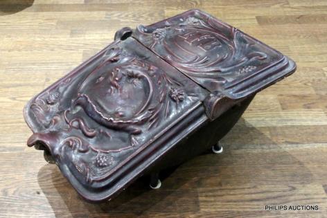 A BELGIAN ART NOUVEAU CAST IRON AND ENAMEL COAL SCUTTLE