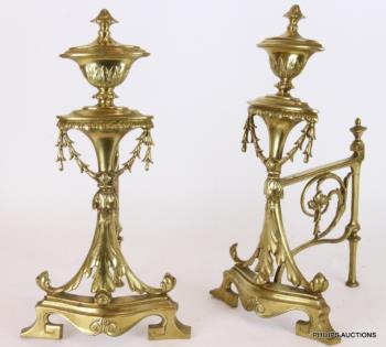 A PAIR OF LOUIS XVI STYLE GILT BRONZE ANDIRONS