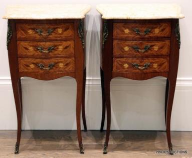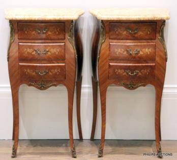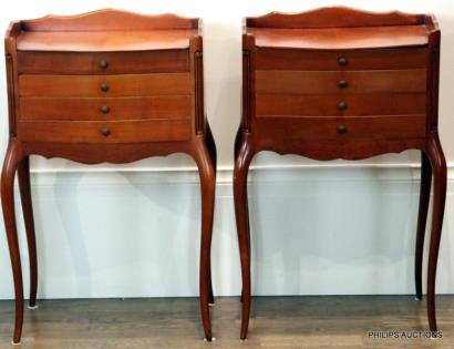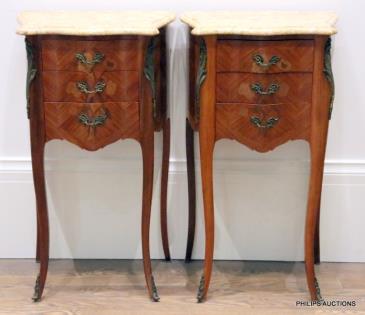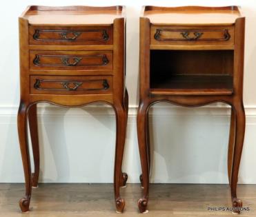 A PAIR OF LOUIS XV STYLE CHERRYWOOD BEDSIDE TABLES