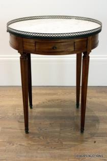 A LOUIS XVI STYLE MAHOGANY AND MARBLE OCCASIONAL TABLE