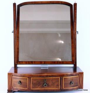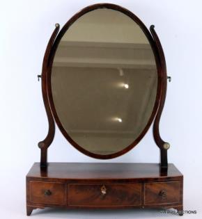 A SHERATON STYLE MAHOGANY SHAVING MIRROR