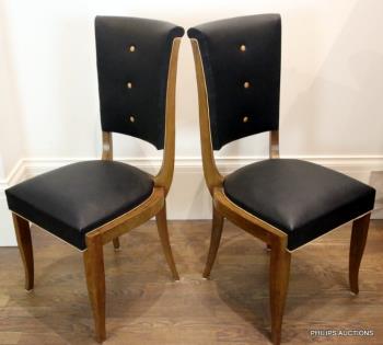 A SET OF SIX ART DECO DINING CHAIRS IN THE STYLE OF JULES LELEU
