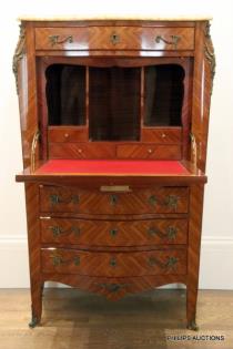 A LOUIS XV STYLE INLAID TULIPWOOD SECRETAIRE A ABATTANT