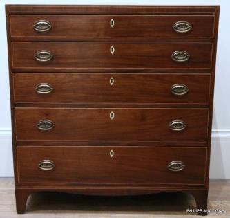 A GEORGIAN STYLE MAHOHANY CHEST OF DRAWERS