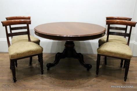 AN EARLY VICTORIAN MAHOGANY TABLE AND FOUR CHAIRS