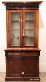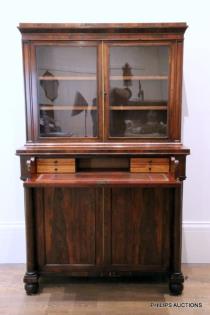 A WILLIAM IV ROSEWOOD VENEER DWARF SECRETAIRE BOOKCASE