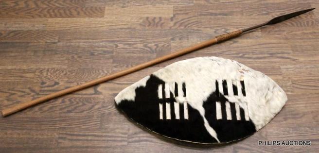 A ZULU HIDE SHIELD AND SPEAR