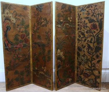 A SPANISH BAROQUE STYLE PAINTED WOOD FLOOR SCREEN