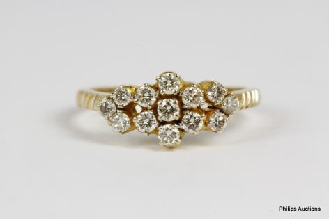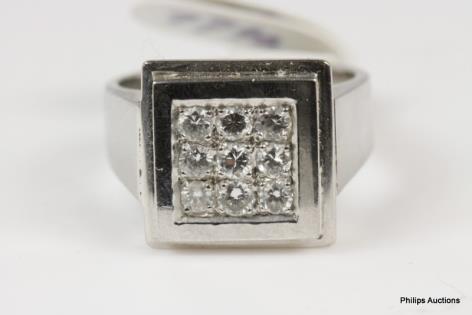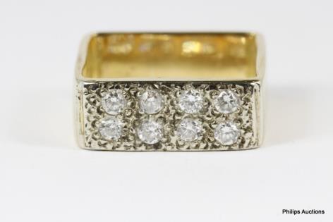 AN 18CT YELLOW GOLD MULTI STONE RETRO STYLE DIAMOND PANEL RING 8.6GRAMS
