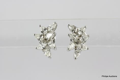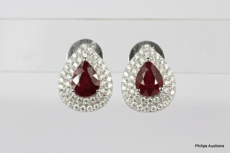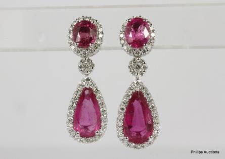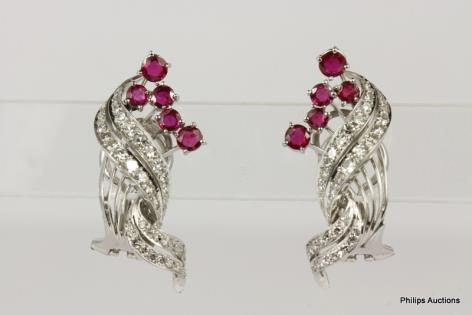 A PAIR OF PLATINUM RUBY AND DIAMOND SPRAY EARRINGS 10.5GRAMS