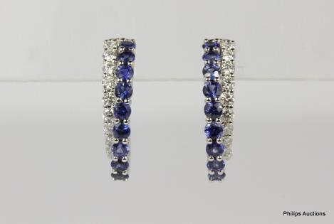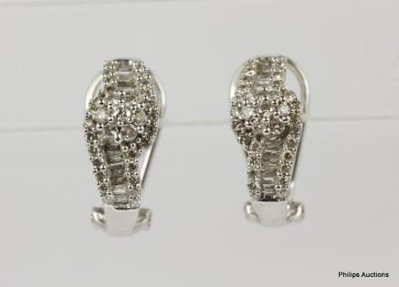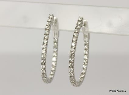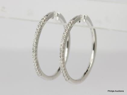 A PAIR OF 0.32CTS DIAMOND SET 18CT WHITE GOLD HOOP EARRINGS 7.4GRAMS