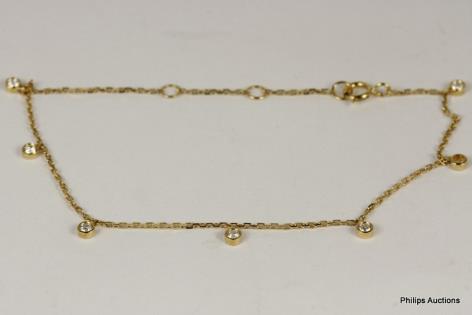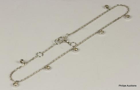 A DELICATE 0.18CTS DIAMOND DETAILED TASSEL STYLE 18CT WHITE GOLD BRACELET 1.2GRAMS
