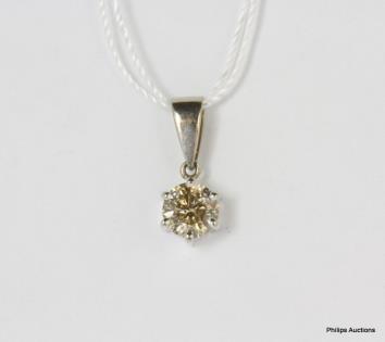 AN 18CT WHITE GOLD, 0.80CT CHAMPAGNE DIAMOND SOLITAIRE PENDANT 1.5GRAMS