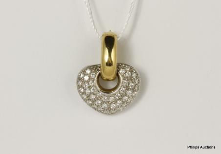 AN 18CT YELLOW & WHITE GOLD QUALITY 0.60CT PAVE DIAMOND SET HEART PENDANT ON BAIL 5.3GRAMS